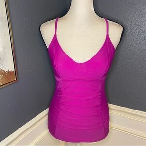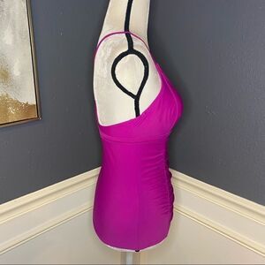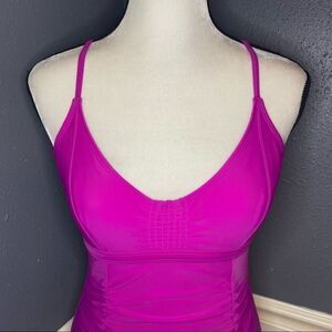 This style features smocked sides and adjustable X-back straps that can convert to straight back straps- Electric fuchsia color - Inspired for: swim/surf/paddle and beach - Adjustable skinny X-back straps for a custom fit - Smocked sides act like body camouflage for your midsection.
