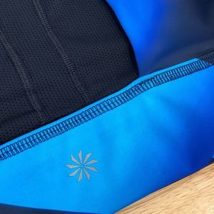 Athleta Sport Bra Keyhole Back Reflective Logo Geometric Black Blue Size S