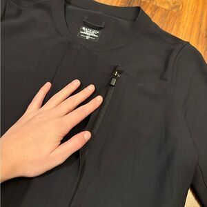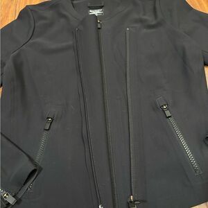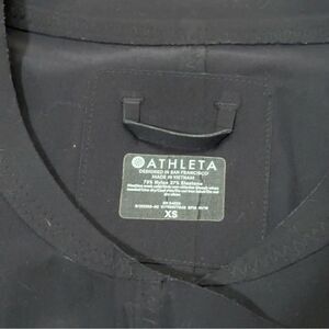 Athleta Stellar Moto Jacket Black Athletic Jacket. Double zip. 2 zip pockets. Fitted. Zip wrists. 73% nylon, 27% elastane. Armpit to armpit 17 inches. Length 21 1/2 inches. Size XS. Good condition!