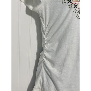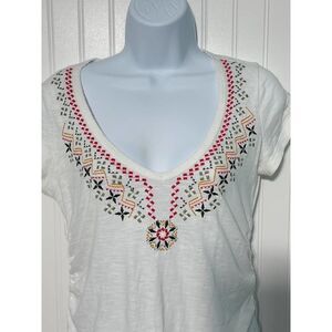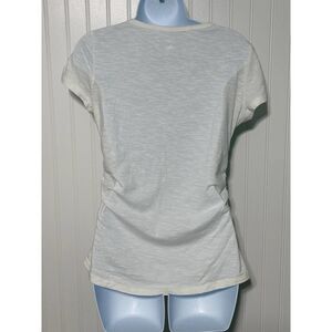 Athleta T-Shirt V-Neck Embroidered Stitching Short Sleeve Tee Shirt White XS
