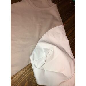 Athleta Tan Top with white short sleeves blouse Shirt women size XL