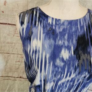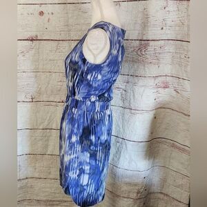 Lightweight sleeveless dress with elastic at the waist. Blue, white, and gray. Soft. In great condition.
