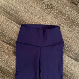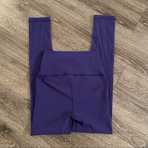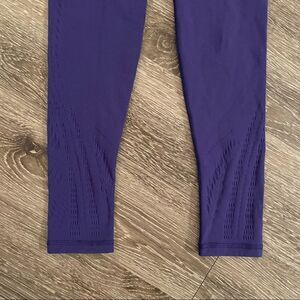 Warp Knit 7/8 Tight in Violet Purple Plum Wide, ribbed, and high-waist waistband for comfort and support that holds you in Seamless construction for a chafe-free practice Beautifully designed airflow mesh patterns through the legs Size S/M Rise approx 10" Inseam 24"