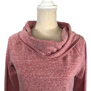Athleta Women’s cowl funnel neck long sleeved pullover top Heathered Red