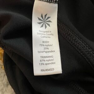 Black yoga pants. They have openings at the ankle with mesh inserts at the thighs and ankles.