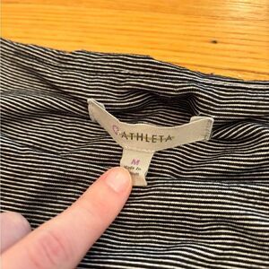 Athleta black/white stripe short sleeve dress. Sleeveless. 73% tencel, 24% polyester, 3% spandex. Armpit to armpit 18 1/2 inches. Length 38 1/2 inches. Size medium. Good condition!