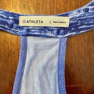 Athleta blue print tee, racerback dress.