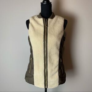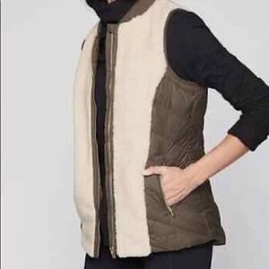 Athleta brown puffer down tundra sherpa nylon zip up vest size small