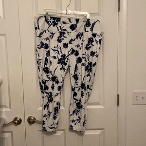 Athleta leggings size 2X in good preowned condition normal wear and tear. They have flowers all over them. The flowers are navy blue black and purple super comfortable leggings see pictures for measurements