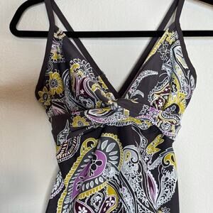 No flaws. Has great support. Cross back straps. Size 4 with a bust of 40C,38D, 36DD.