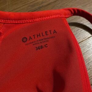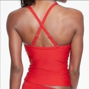 New with tags Athleta twister tankini top. Color red red, size 36B/C, quick dry, underwire, adjustable straps. See pictures for details.