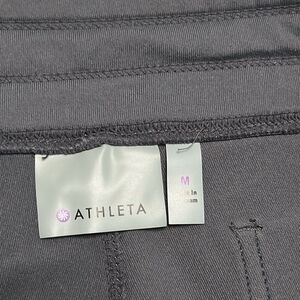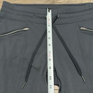 Athlete Metro Slouch Mid Rise Jogger Ankle Cinch Gray Pants Size Medium. Great condition. 88% Nylon/12% Spandex. Pull on pants with comfort stretch waistband and outside drawstring. Front zipper pockets. Back pockets. Cinch cord at ankles. See pictures for measurements.