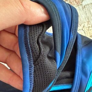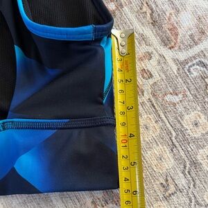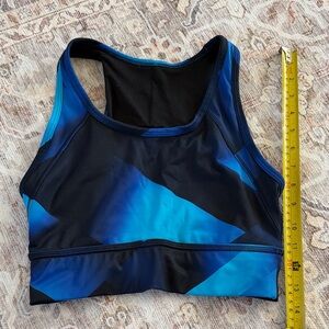 Stay comfortable and stylish with this women's sports bra. Featuring a sleek blue and black design, it's perfect for workouts or casual wear.