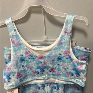 Athletic Blue and Pink Tie-Dye Tank Top and Shorts Set