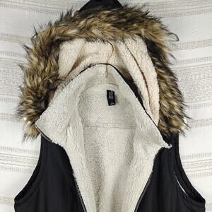 Athletic Collection Black Faux Fur Hooded Vest Size XL Lined
