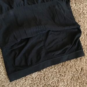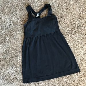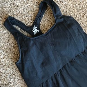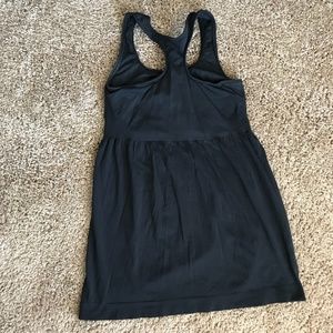 EUC Athletic Essentials (AE) racerback athletic tank top. Sports Bra fitted top, loose bottom. 93% nylon, 7% spandex. Size medium, but I do think it runs small. Without stretch (i.e. stretches up): Approx. 25” bust (up to 32”), 26” waist, 38” hips, 20” from underarm to bottom hem. Only imperfection is the stretch/wear on the “tag”.
