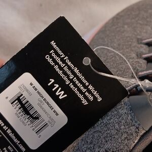 Stylish gray sneakers with pink accents. Comfortable and trendy design. Perfect for casual wear.