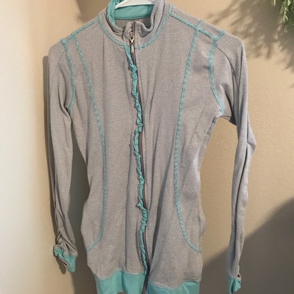 Turquoise and Grey athletic jacket.
