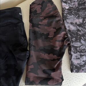 Set of three athletic leggings. Includes black camo, 23 lengrh , brown camo print 25lenfth, and gray abstract print in 23 lengrh. Align style perfect for workouts or athleisure wear in great condition✨