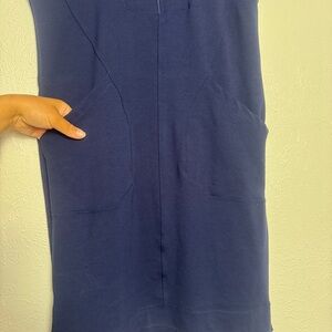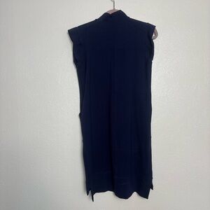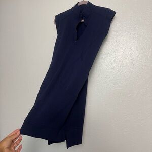 This elegant navy midi dress is perfect for any occasion. Its sleek design offers a sophisticated look, making it a versatile addition to your wardrobe. Quarter zip. Very stretchy thick athletic material. Bodycon fitted shape enhancing. Measurements laying flat are approximately Chest- 21 Length- 36