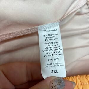 These athletic shorts feature a vibrant orange and purple color scheme, designed for optimal performance and comfort. The elastic waistband ensures a secure fit, while the lightweight fabric allows for breathability during workouts. Also has a drawstring and 2 pockets. Ideal for sports and active lifestyles. 2XL