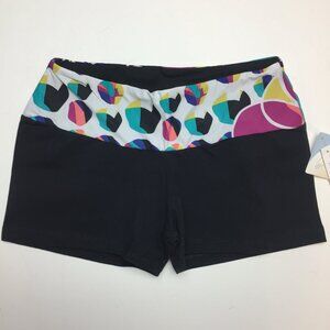 Lino Fitness VERY lowrise compression shorts with a retro colorful print on the waist. Print may vary from picture.