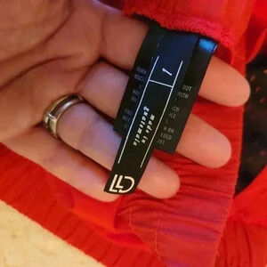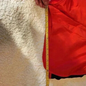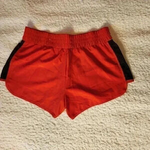 Red and Black Athletic/ Running shorts. Tag says they are size L, but they are more like an M. So please see pictures for measurements and ask for any other measurements before purchase. In good condition.