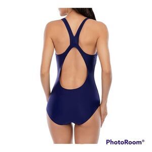 Athletic Training One Piece Swimsuit Tummy Control Open Back Navy Blue Size S