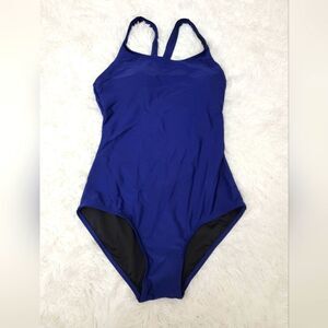 Athletic Training One Piece Swimsuit Tummy Control Open Back Navy Blue Size S