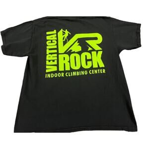 Black and neon green vertical rock #climbing t-shit from Athletic Union, size Youth Large. Shirt is 22" long. Armpit to armpit is 17". Smoke-free home.