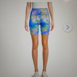 Fitted, high-waist, stretchy, Hawaiian print, running, jogging, workout, exercise, activewear, Bermuda, casual, summer, vacation, beach, cruise, holiday, flattering, comfortable, weekend, summertime, outdoor, hot pants, athleisure, nature, hiking, bike, walking, spring, fall, sports, yoga