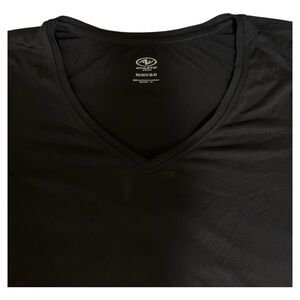 This sleek black tee from Athletic Works is designed with a fitted silhouette and short sleeves, offering a comfortable and stylish fit. Made from a soft, solid black fabric, it serves as a versatile addition to any wardrobe used once.!!