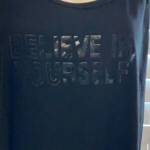 This black tank top from Athletic Works features a sleeveless design and a relaxed fit, perfect for casual wear. Made from a soft, stretchy knit fabric, it offers comfort and ease of movement. The scoop neckline adds a touch of style to this versatile top.