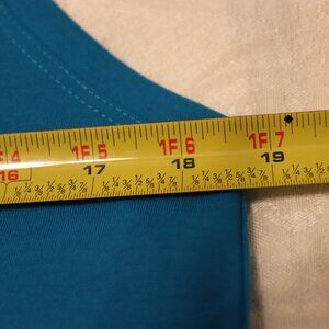Please see photos for specific measurements on each. Pit to pit is about the same, but the blue / grey heathered one is longer.