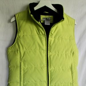 ATHLETIC WORKS Down Vest Ladies Medium (8/10) ~ Adrenaline Lime ~ Down Feathers & Black Fleece Lined