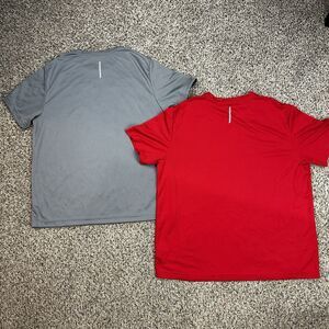 Athletic Works DriWorks Knit Shirt Mens Sz L /XL Gray Red Short Sleeve Crew Neck