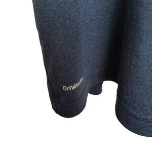 This Athletic Works DriWorks performance tee delivers reliable moisture-wicking technology in a versatile navy blue shade. The eco-conscious blend of recycled and standard polyester provides quick-drying comfort for workouts while remaining soft enough for everyday wear. The raglan sleeve design allows natural range of motion, making this tee ideal for gym sessions, outdoor activities, or casual athleisure styling. The heathered navy fabric offers a modern look that pairs easily with athletic shorts, joggers, or jeans.