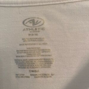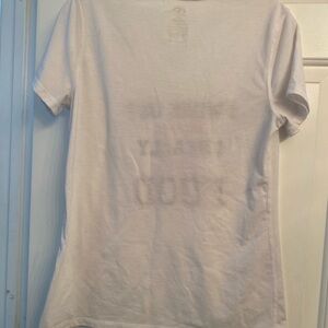Athletic Works “I work out because I love Food” graphic logo t- shirt. White with black and pink lettering. V neck. Excellent preowned condition. No rips, stains or tears. Medium