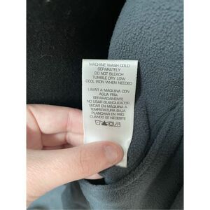 Lightly used. White, grey and blue jacket. Hood can be hidden under the collar. It snaps under.
