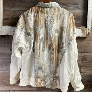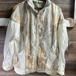 Athletic Works Ladies Nylon Windbreaker Jacket, Size Medium,Cream Multicolor,Vtg