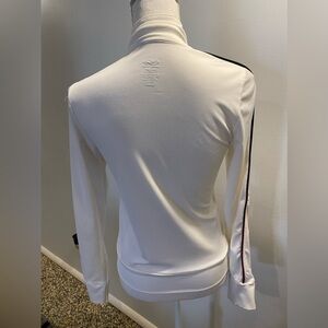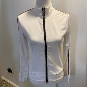excellent condition, pet/smoke/stain free, 90% polyester & 10% spandex, white with black & pink trim