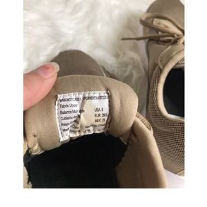 Great use condition sneakers athletic shoes great for running going to the gym and a light brown fabric top with white rubber soles in memory foam for the most comfort shoe ever you can see in photos there’s couple marks on shoe none really on outside but price does reflect bundle for great discounts and I ship same day