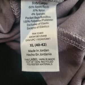 Grey has zippered pockets and is mostly rayon (60%)