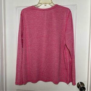 Athletic Works, long sleeve, athletic top. Pink and white, sort of abstract stripe. Has one spot on sleeve hem, where threads are loose.