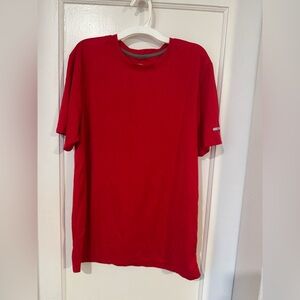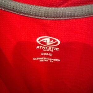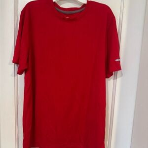 This vibrant red tee from Athletic Works features a classic crew neck and short sleeves, perfect for casual wear. Made from a comfortable knit fabric, it offers a relaxed fit for everyday comfort. Its striking color makes it a standout piece in any wardrobe. Bin 8 item 3.