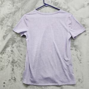 Athletic Works Top Womens S Purple Striped V-Neck Short Sleeve Pullover Casual