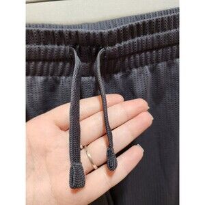The Athletic Works Women's Black XL Shorts are perfect for active women who want to stay stylish while working out. These sporty running shorts feature a drawstring closure and a solid black color with pink trim accents. Made from 100% polyester mesh fabric, they are lightweight and comfortable, making them ideal for gym workouts or jogging.