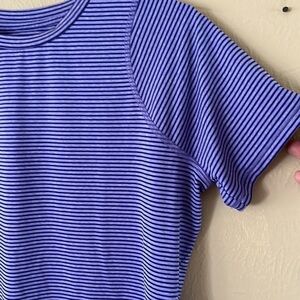 Athletic Works size small 4–6 purple blue striped workout top short sleeves