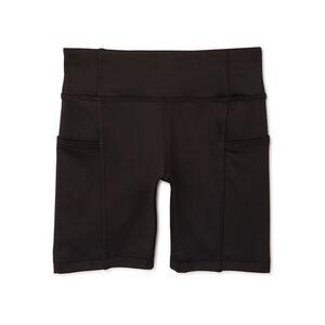 Athletic Works girls biker shorts, black stretch shorts girls, girls size 6/6X active shorts, biker shorts with pockets, girls shorts for under dresses, recycled fabric kids shorts, toddler girls play shorts, girls athletic shorts size small, basic black bike shorts, summer shorts girls size 6