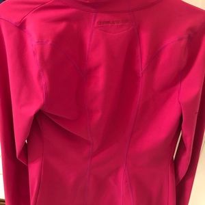 Stretchy jacket, very flattering, long arms, great for running or running errands in. No stains or rips!